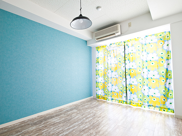 このような事例もあります。“アートギャラリーと勘違いしてしまうオフィスのエンランス”。オフィスの玄関をミニマムな空間にデザインし、そこに大きな一枚のイラストを飾りました。このイラストはお客様の会社の未来像を表現したもので、ポップで独特の世界観のあるイラストレーターさんに特別に描き下ろしていただきました。