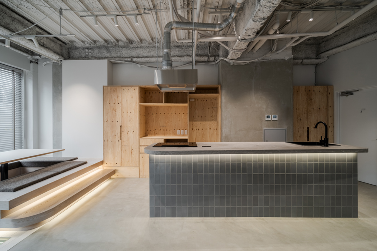 私たちのオフィスデザインの中には、“オフィスに家のリビングが出現”という事例があります。社員が自然に集まってくる、家のリビングのような帰りたくなる場をコンセプトに、一部の空間をこのようなほっと気持ちが落ち着くデザインにしました。