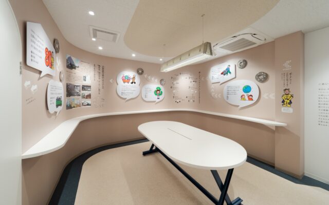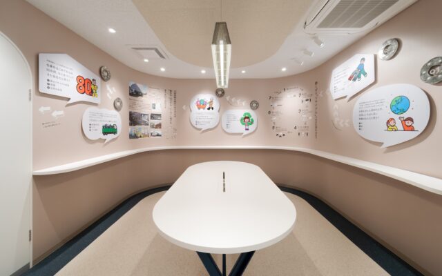 例えば、私たちがデザインした中に、“社員の子供がパパやママの会社に行きたくなるオフィスデザイン”という事例があります。大きなガラスの壁面いっぱいに会社の未来をオリジナルでイラストを描き下ろしました。製造業の工場やオフィスで働くパパやママがどんなお仕事をしているのかを伝えられたらという思いでデザインしました。