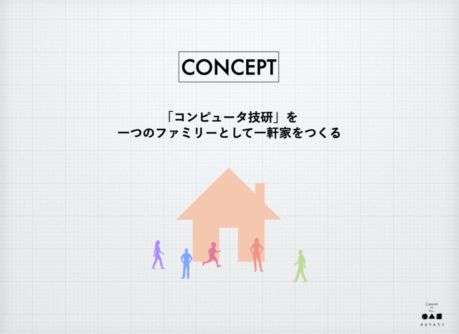 良くも悪くも自分には「家=母親が迎えてくれるもの」といったイメージがあったんです。そのジェンダーロールを担う文化は、うちの会社にはない。僕個人のイメージと会社の実態、そしてKATATIさんに提案いただいたコンセプトがうまく噛み合わずに迷っていました。でも、よくよく考えれば、会社という家で、社員という子どもたちがわいわいやっている感じはある。それなら「家」でもいいかと。