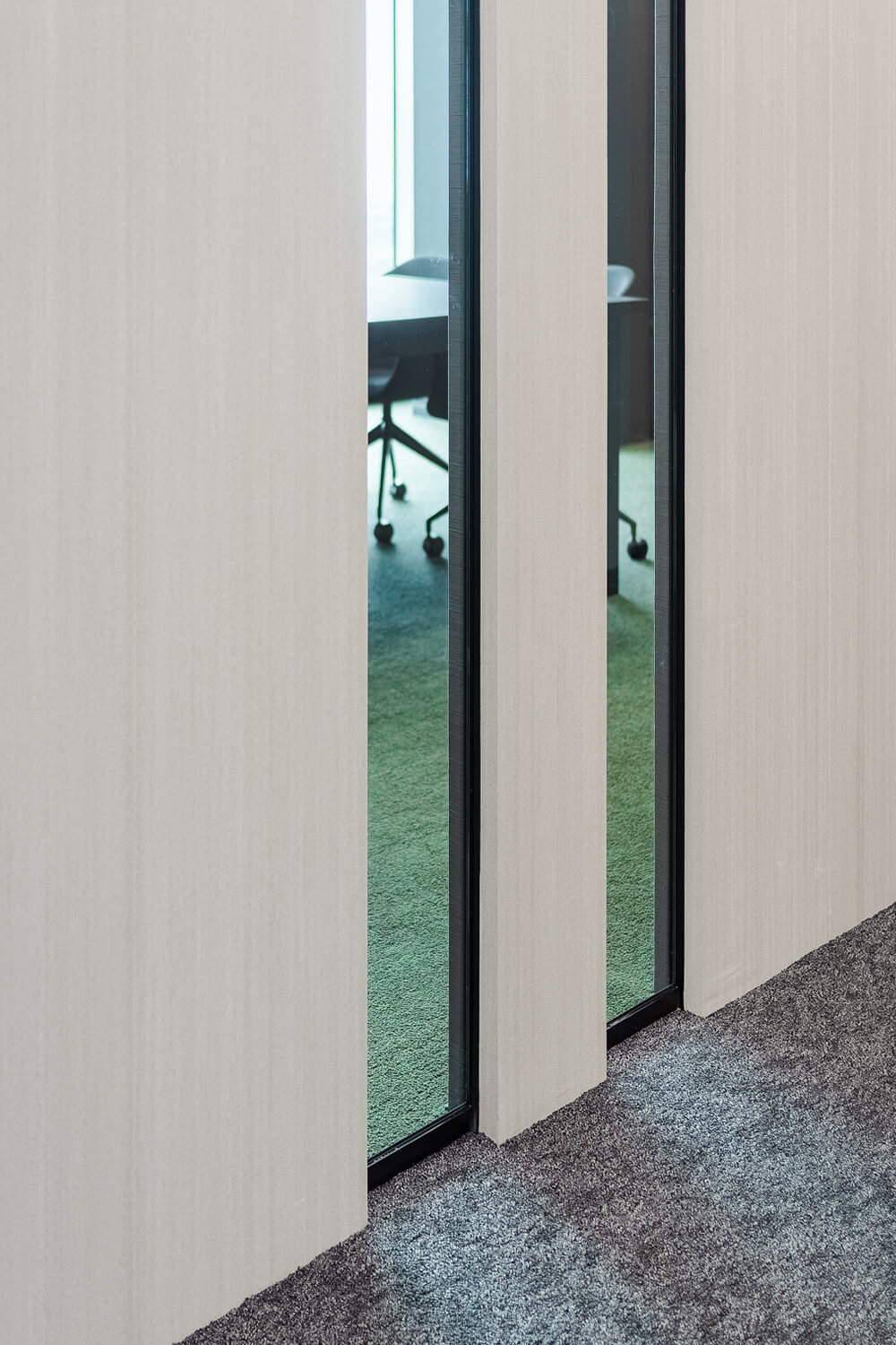 会議室の壁にスリットを入れ、使用中なのかどうかが外からわかるつくりに