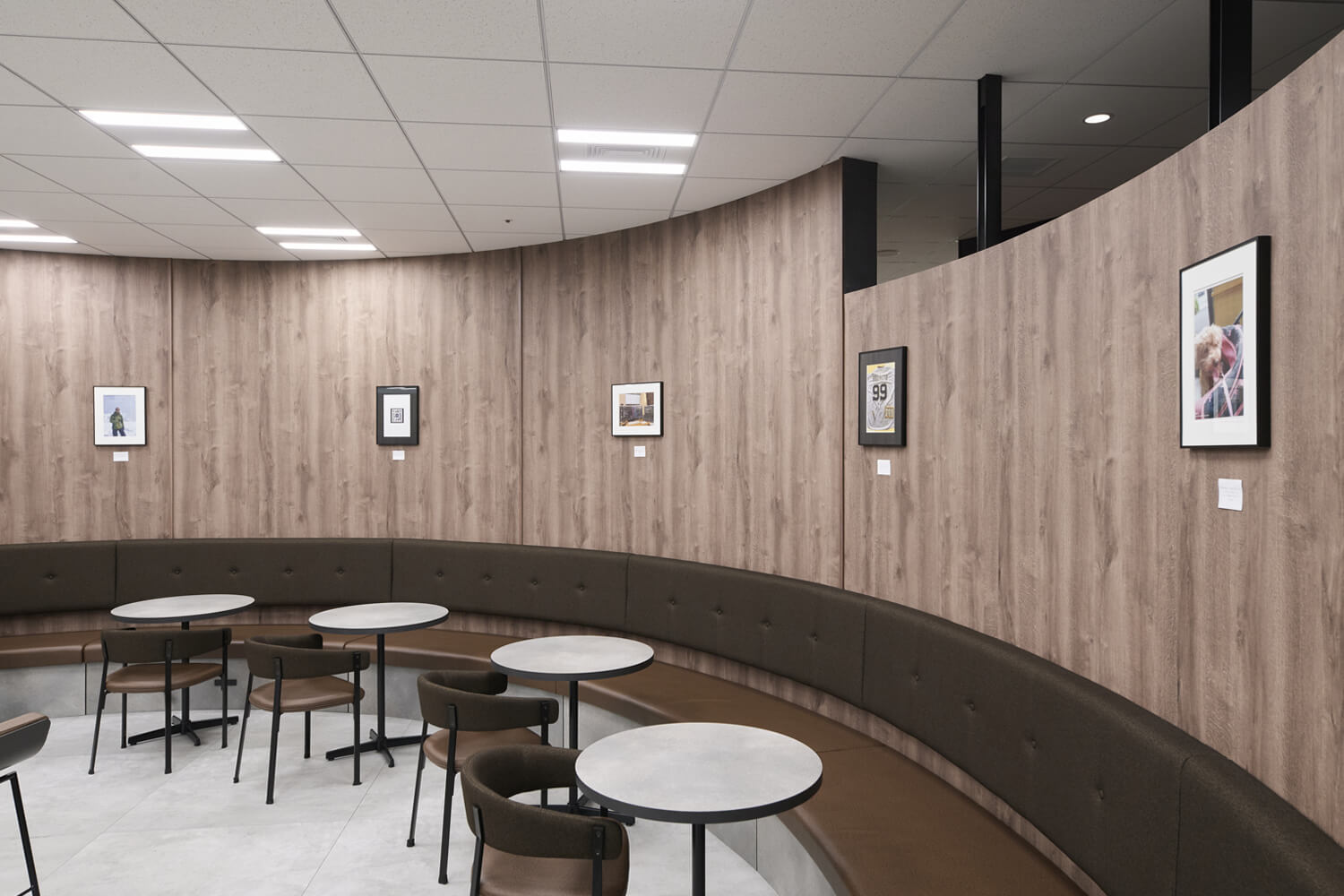 窓際のボックスシート。既存スペースに存在したシートと同じデザインのものを増設した