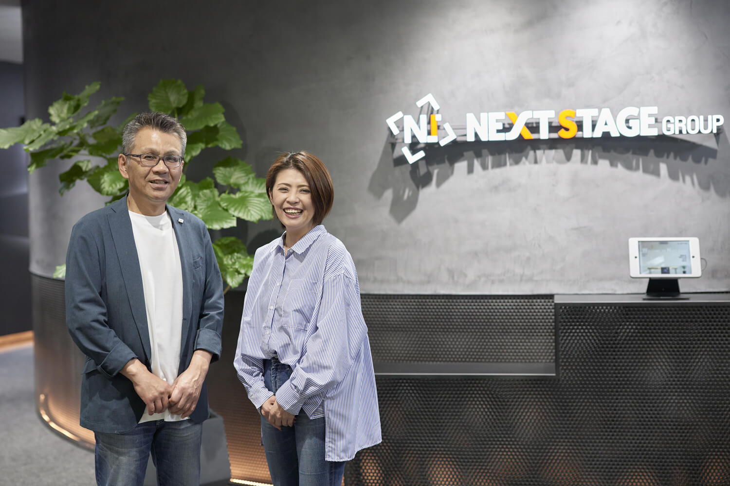 取材後、エントランスの前で小村社長と広森さんを撮影させていただきました