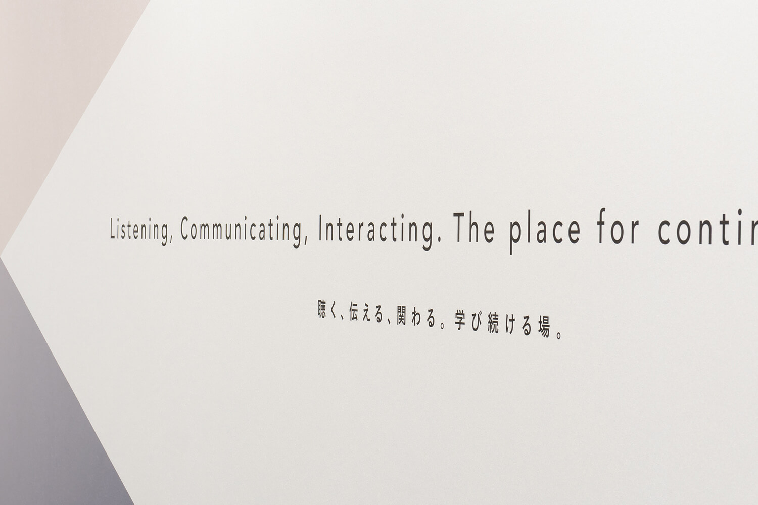 大会議室の壁には“Listening, Communicating, Interacting, The place for continuing education.=聴く、伝える、関わる。学び続ける場。”の文字をあしらった